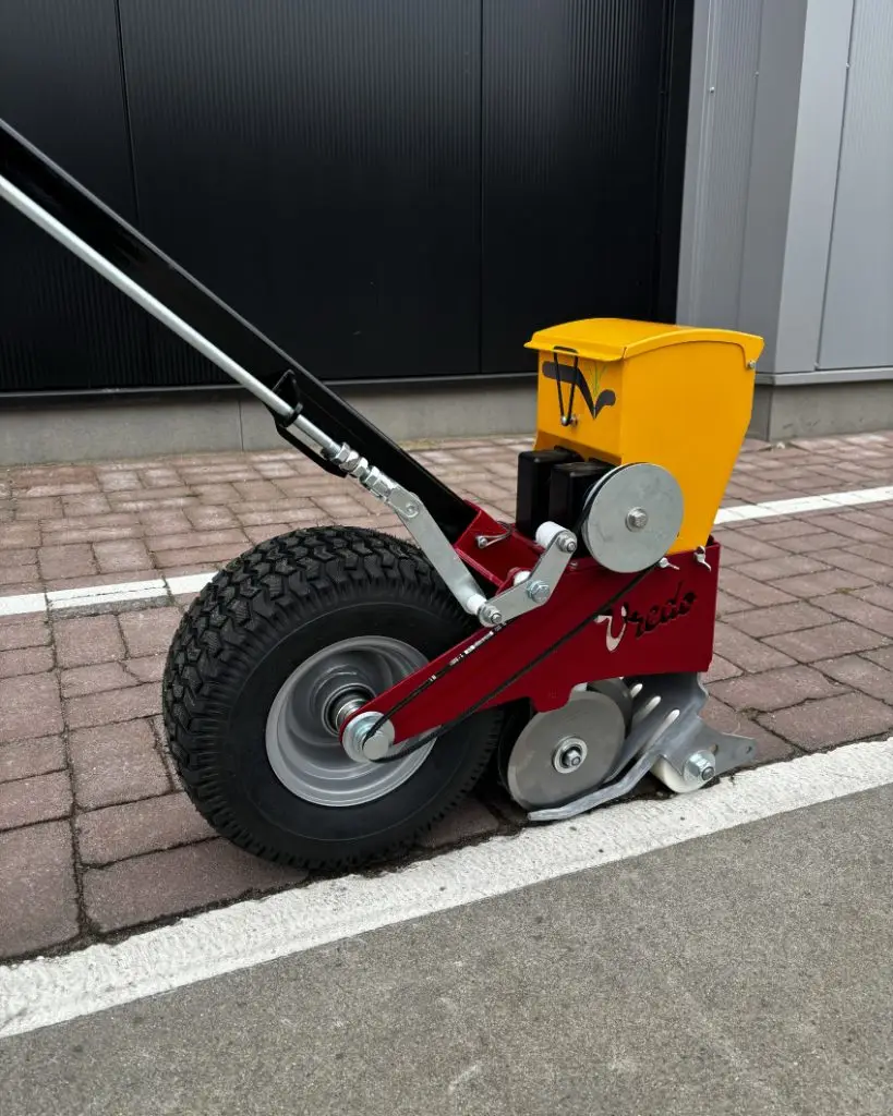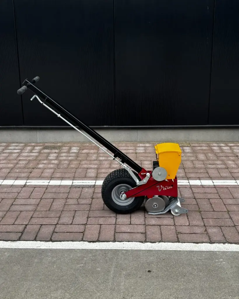 Handbediende doorzaaimachine met Vredo dubbel-schijven-systeem